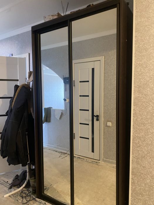 Очень большой шкаф купе рядом есть тумбочка с зеркалом коричневый цвет