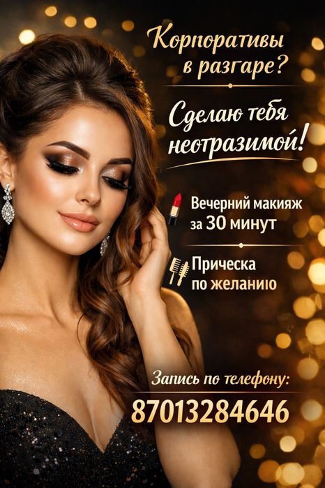 Вечерний макияж + прическа за 30–60 мин