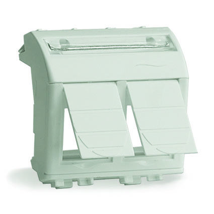 Адаптер на 2 информационных разъема (гнезда), 2 модуля. Назначение: установка неэкранированных разъемов RJ-11 и RJ-45. Характеристики: на 2 модульных гнезда; наклонная; с пылезащитными шторками (крышками); с окном (полем) для маркировки "рабочего места", размер окна − 6х37 мм. Тип гнезда: Keystone. Перечень некоторых производителей гнезд такого типа: AMP, Hyperline, Premium Line Systems GmbH, BICC Brand-Rex, KRONE Link, AESP Signamax, RiT Smar. Кол-во модулей: 2. Цвет: белый. Совместим с модулями Keystone: RNK6AF90TL; RNK6AU180BK; RNK6AU180WH RNK6F90TL; RNK6U180BK; RNK6U180WH RNK5EF90TL; RNK5EU180BK; RNK5EU180WH.