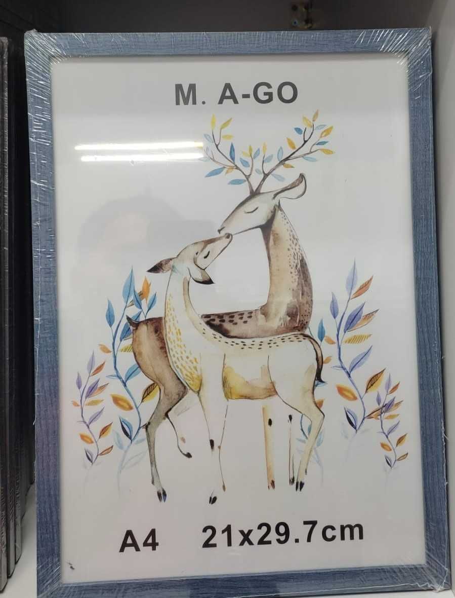 Фоторамки в наличии новые А5, А4, А3, А2, стекло, оргстекло, однотонные, цветные, под золото, разные в ассортименте, большой выбор. Цена А4 от 700тг, продажа от 15шт.