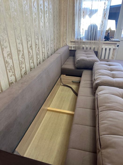 Продам диван в отличном состоянии, был куплен в этом году. Продаю в связи с переездом. Длина 3 м, делается как угловой и можно убрать, длина подвижного спального места 2 м, ширина короткого края 1 м, углового 1,6м, ящики большие. Звонить и уточнять по номеру 87******028