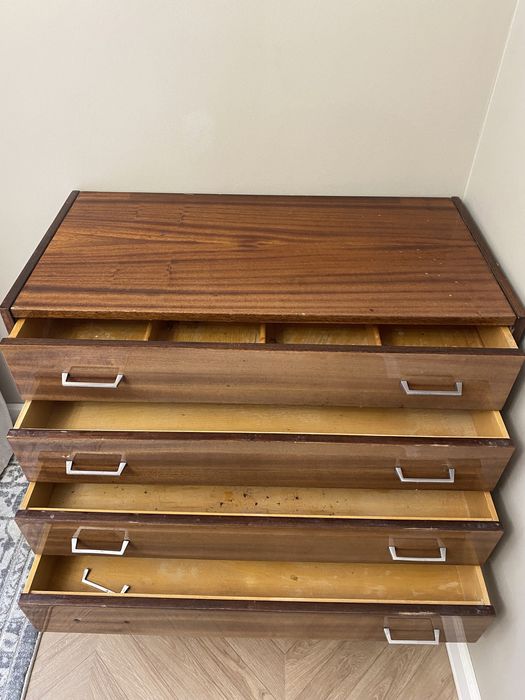 Продаю редкую Чехословацкую тумбочку 60-х годов. Она очень компактных размеров и удобна как туалетный столик. Все ручки есть. Размеры: ш-40см, дл-80см, выс-73,5см. Ножки откручиваются.