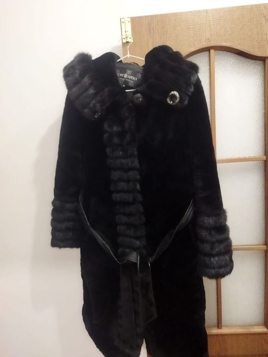 Женская мутоновая шуба, размер L, черная