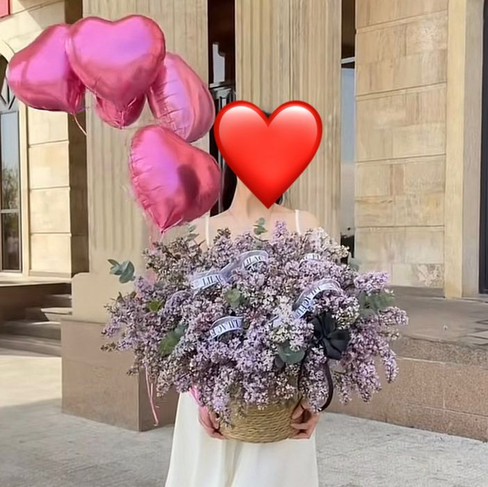 (сирень)цветы с шарами как на фото.