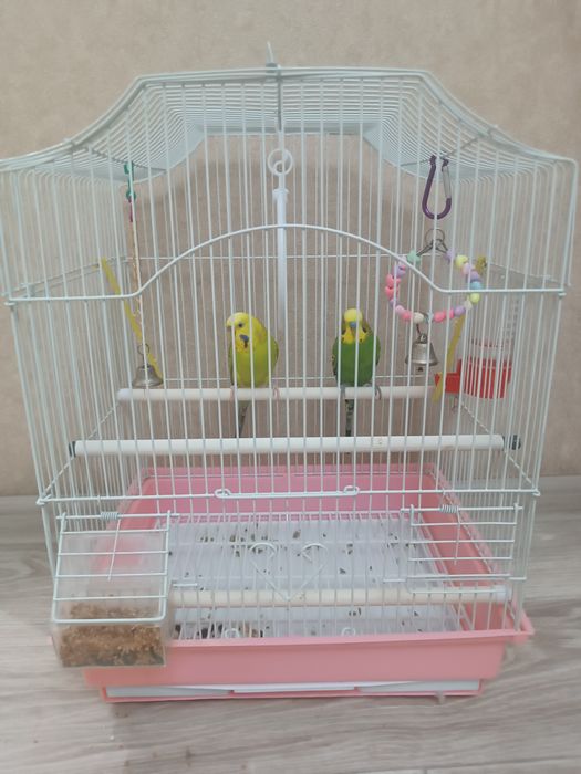 Продаются два волнистых попугая вместе с клеткой