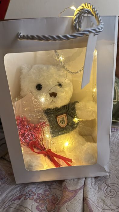 Мишка с гирляндой белый  6000