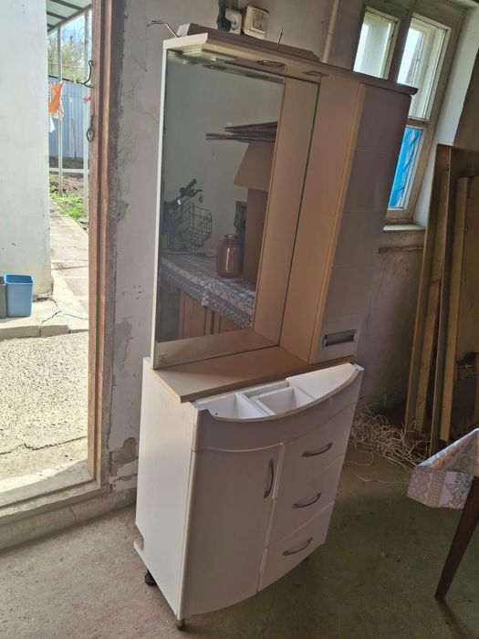 Продам зеркало с подсветкой в ванную комнату вместе со шкафом нижним.