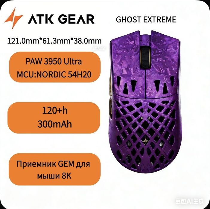 Игровая мышь беспроводная  ATK Blazing Sky GHOST Extreme фиолетовая.