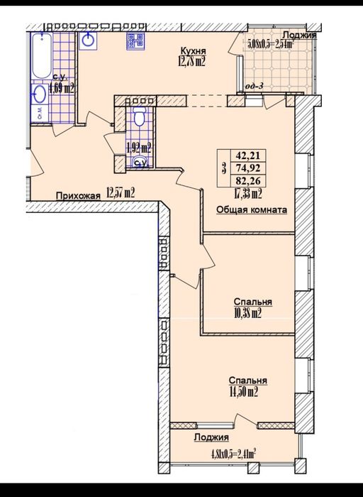 3-х ком Кжби 71.2 м2