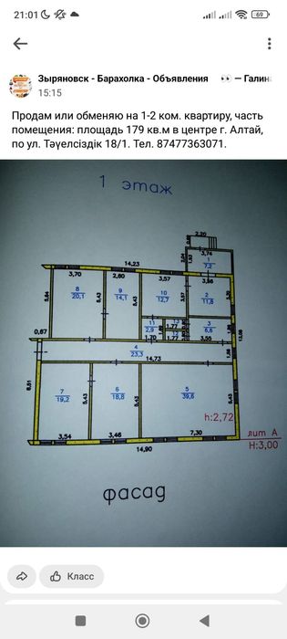 Продам часть дома 179 кв. м, по ул. Түелсіздык 18/1  (бывший дет. сад)