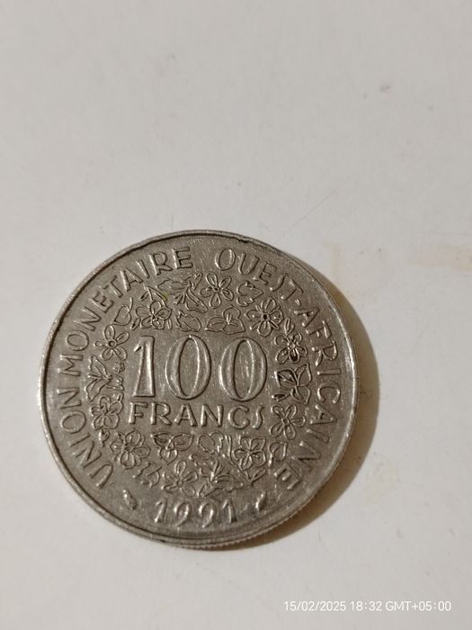 Западно-Африканская манета 100 франков, 1991 года.