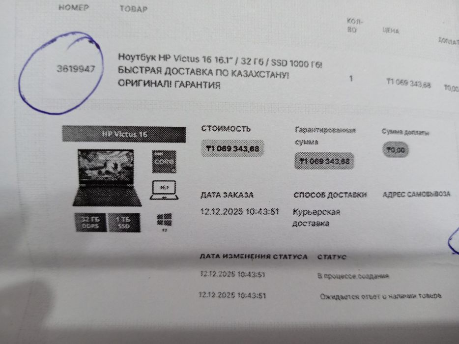 Hp victus 16 1 Тb новый срочно