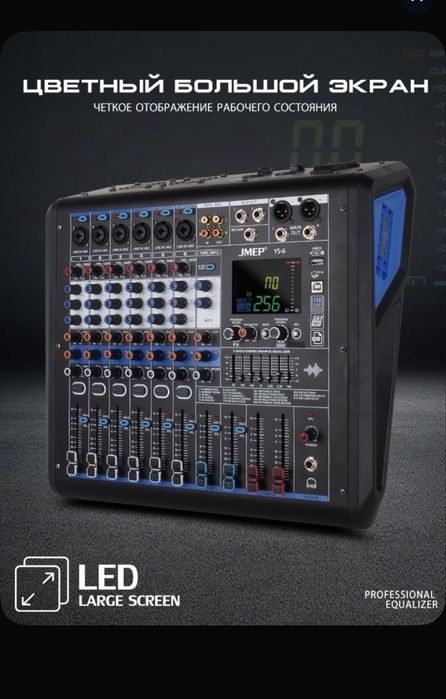 Активный микшерный пульт 6 канальный с усилительем 600+600 ватт