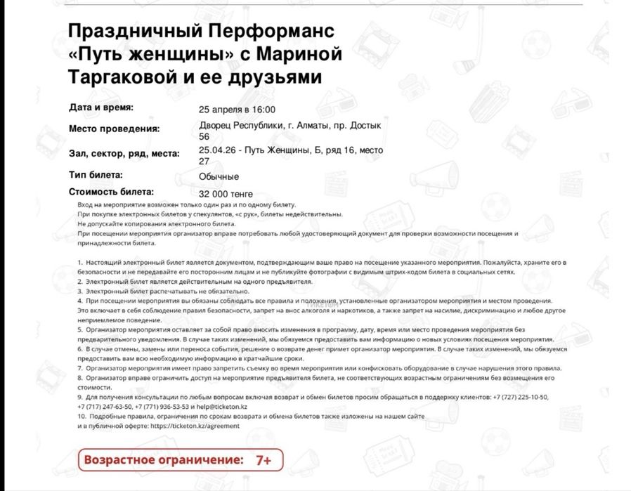 Продам два билета на Концерт с Мариной Таргаковой