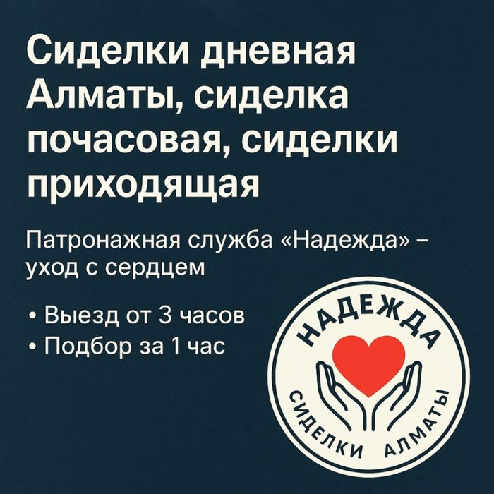 Услуги няни и сиделки Алгабас: у нас вы можете вызвать приходящую няню на час или заказать услуги сиделки с проживанием. Требуется няня для ребенка? В сервисе OLX.kz вы найдете объявления как специализированных агентств нянь, так и частных лиц, предоставляющих услуги няни на день и с проживанием. Нанять сиделку для пожилого человека или инвалида также не составит труда — ознакомьтесь с предложениями на OLX.kz Алгабас и вы непременно подберете несколько подходящих кандидатур. Быстрый и удобный заказ услуг только на OLX!