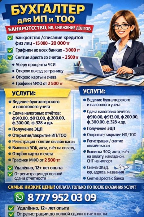 Деловые услуги населению и предпринимателям Бирлик. Услуги от частных лиц и организаций в сервисе OLX.kz Бирлик.