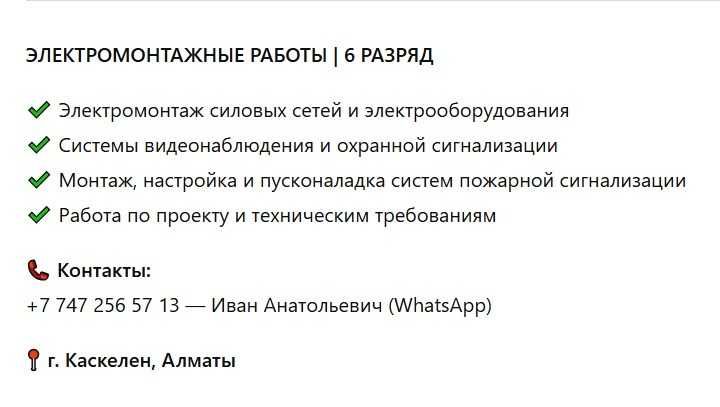 Электрик 24/7 Каскелен