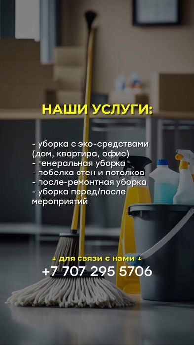 Услуги клининговых компаний и частных лиц по уборке помещений и территорий им.Бактыбая Жолбарысулы: объявления на OLX.kz им.Бактыбая Жолбарысулы.