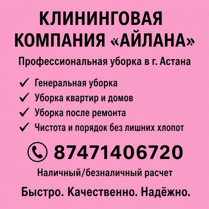 Уборка Квартир Дом Офис Помещение Ген Уборка Химчистка Астана