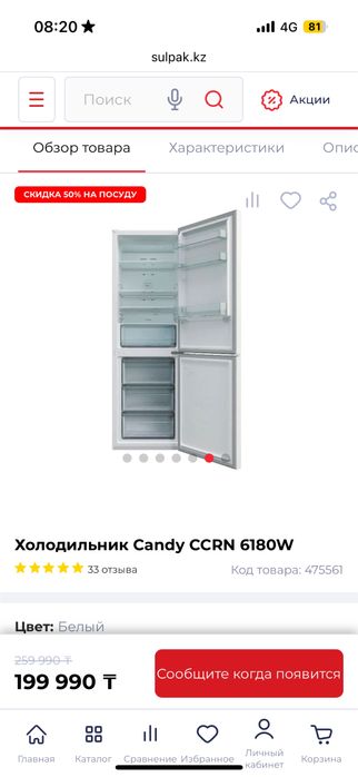 Холодильник Candy 185см CCRN6180W