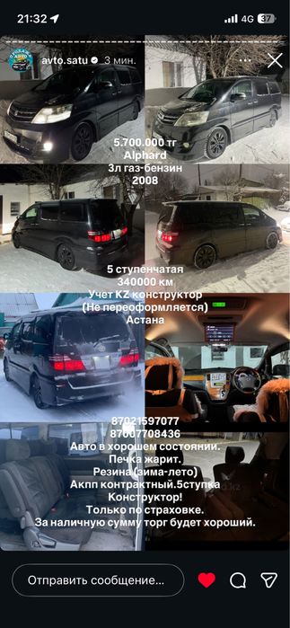 alphard — Продажа аксессуаров для авто Акмолинская область ✔️ Большой выбор новых или Б/У товаров ⭐ ️Готовые комплекты и наборы автоаксессуаров по низким ценам на OLX.kz!