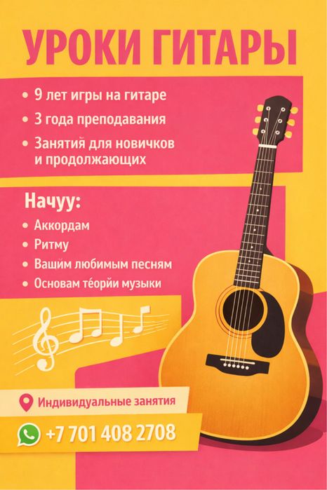 Преподаватель гитары с 9-летним стажем игры.