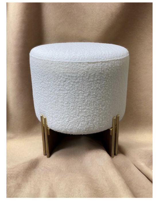 Пуфик белый с золотом, размер 43x43x45